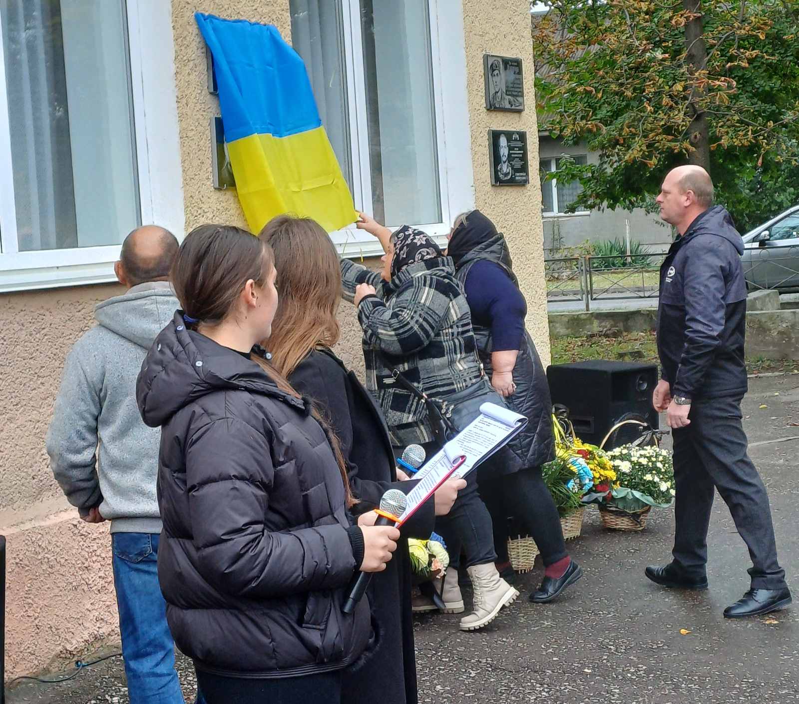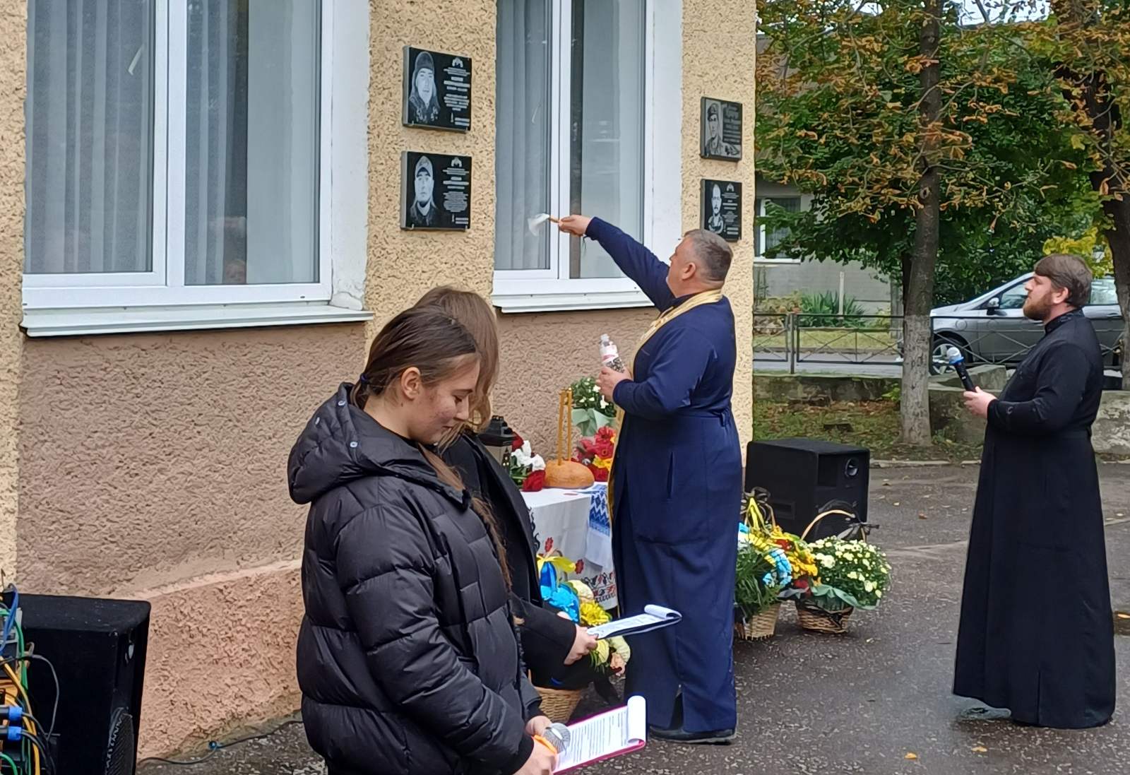 На заході були присутні батьки та рідні загиблих, педагоги, учні, а також священнослужителі, які освятили пам'ятні дошки і помолились за упокій душ Героїв.